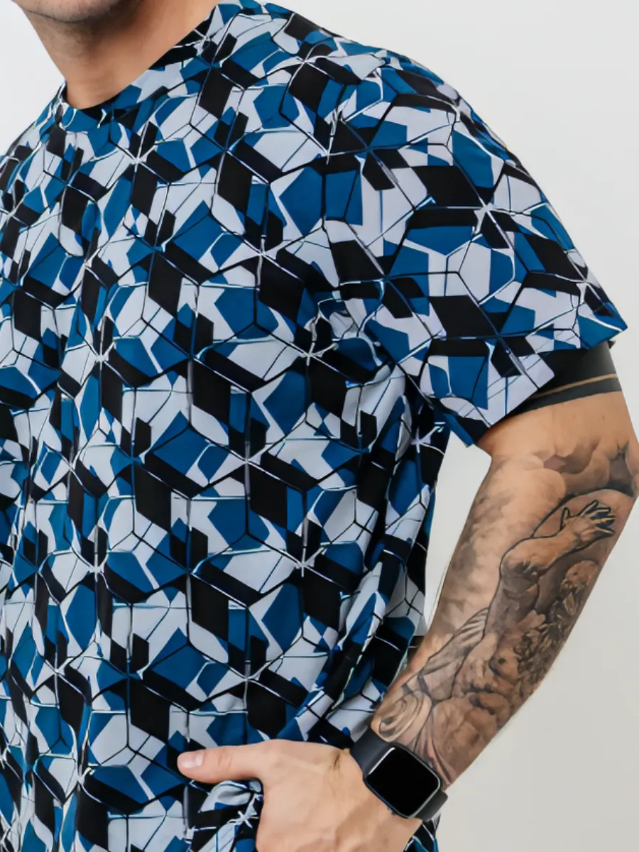 "Футболка мужская оверсайз от модного российского бренда Seltex производителя современного трикотажа для ценителей стиля и комфорта. Исключительная оверсайз модель с эффектным притом. Она идеально подойдет для людей, которые любят выделяться и быть в центре внимания. Синяя расцветка создает стильный и брутальный образ, делая ее оптимальным выбором на каждый день.