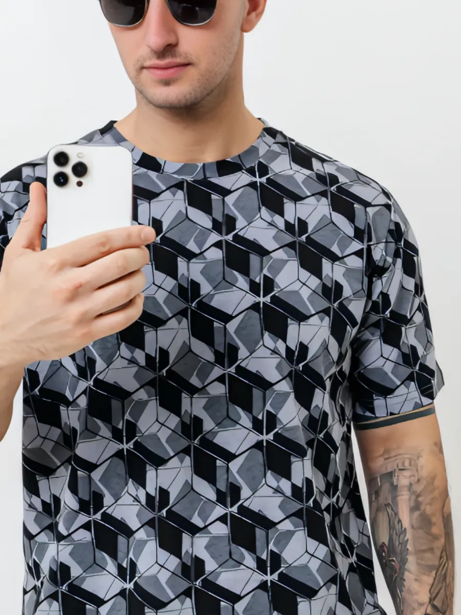 Широкий ассортиментный ряд позволит каждому подобрать изделие, которое подойдет именно ему. Футболка летняя с современным принтом, привлекающий внимание и добавляющий оригинальности любому образу. Подходит как для подростка, так и для взрослого мужчины. Альянс стиля и качества делает вещь идеальной не только для парных образов на свидания или в ночной клуб, но также как одежда для дома и отдыха.