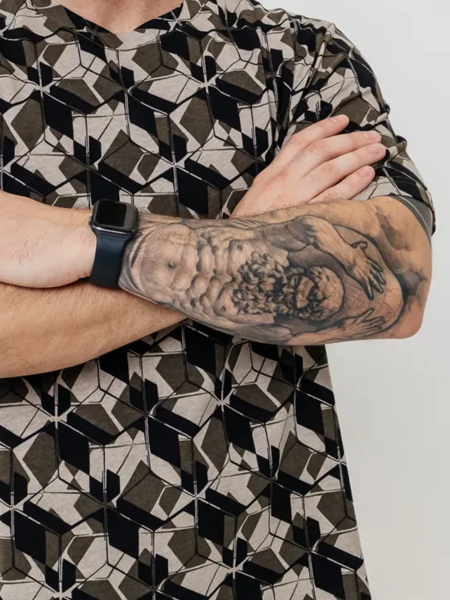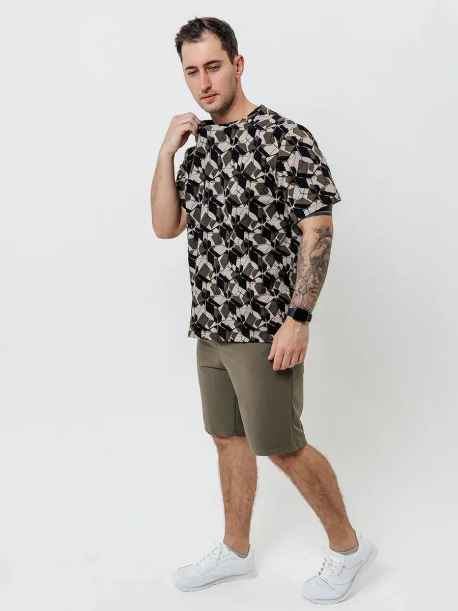 "Футболка мужская оверсайз от модного российского бренда Seltex производителя современного трикотажа для ценителей стиля и комфорта. Исключительная оверсайз модель с эффектным притом. Она идеально подойдет для людей, которые любят выделяться и быть в центре внимания. Расцветка хаки создает стильный и брутальный образ, делая ее оптимальным выбором на каждый день. Ткань с 3D рисунком создает интересные оптические иллюзии , также вы можете купить такую же сыну и создать парный фэмили лук.