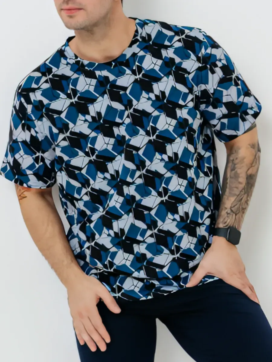 "Футболка мужская оверсайз от модного российского бренда Seltex производителя современного трикотажа для ценителей стиля и комфорта. Исключительная оверсайз модель с эффектным притом. Она идеально подойдет для людей, которые любят выделяться и быть в центре внимания. Синяя расцветка создает стильный и брутальный образ, делая ее оптимальным выбором на каждый день. Ткань с 3D рисунком создает интересные оптические иллюзии , также вы можете купить такую же сыну и создать парный фэмили лук. Внимание! Только машинная и бережная стирка при 30°С, без агрессивных моющих средств. Состав ткани : 100% турецкий хлопок. ПЛОТНОСТЬ: 190-210 Г/М2 Мягкий хлопок обеспечивает уют и приятные тактильные ощущения. Базовая вещь гардероба ― прекрасно сочетается с различной одеждой. Ее универсальность позволяет легко адаптировать изделие к разным стилям ― от спортивного до повседневного. Спортивная модель прекрасно подойдет мужчинам любого возраста и комплекции. Широкий ассортиментный ряд позволит каждому подобрать изделие, которое подойдет именно ему. Футболка летняя с современным принтом, привлекающий внимание и добавляющий оригинальности любому образу. Подходит как для подростка, так и для взрослого мужчины. Альянс стиля и качества делает вещь идеальной не только для парных образов на свидания или в ночной клуб, но также как одежда для дома и отдыха. Станет отличным решением подарка в день рождения, производитель трикотажа Seltex гарантирует высокое качество пошива и долговечность даже при частом использовании. Для тех, кто занимается спортом данная модель отлично подойдет для посещения фитнес-клуба или любителя футбола, бега, тренажерного зала. Для мальчиков подростков - это отличный способ выразить индивидуальность через продуманный дизайн для активных игр или прогулок."