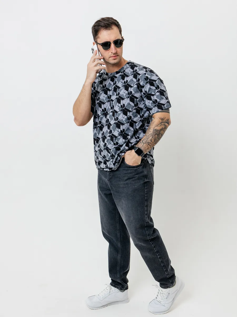 —Футболка мужская оверсайз ФК678 куб серый