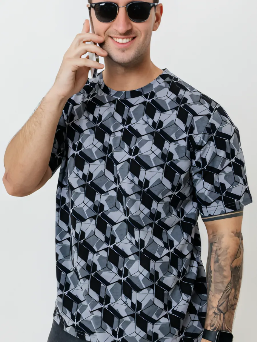 Футболка мужская оверсайз ФК678 куб серый