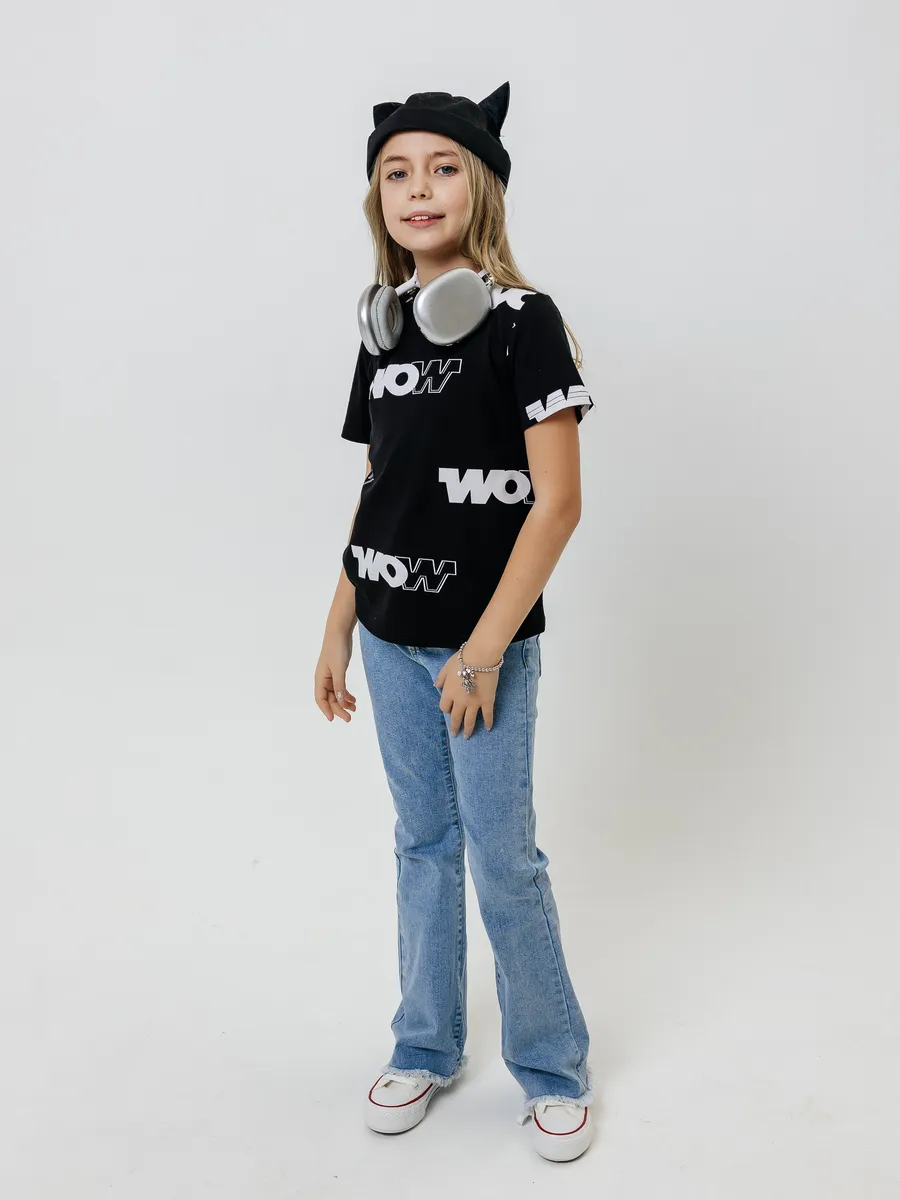 —Футболка для девочки с принтом хлопок летняя пляжная