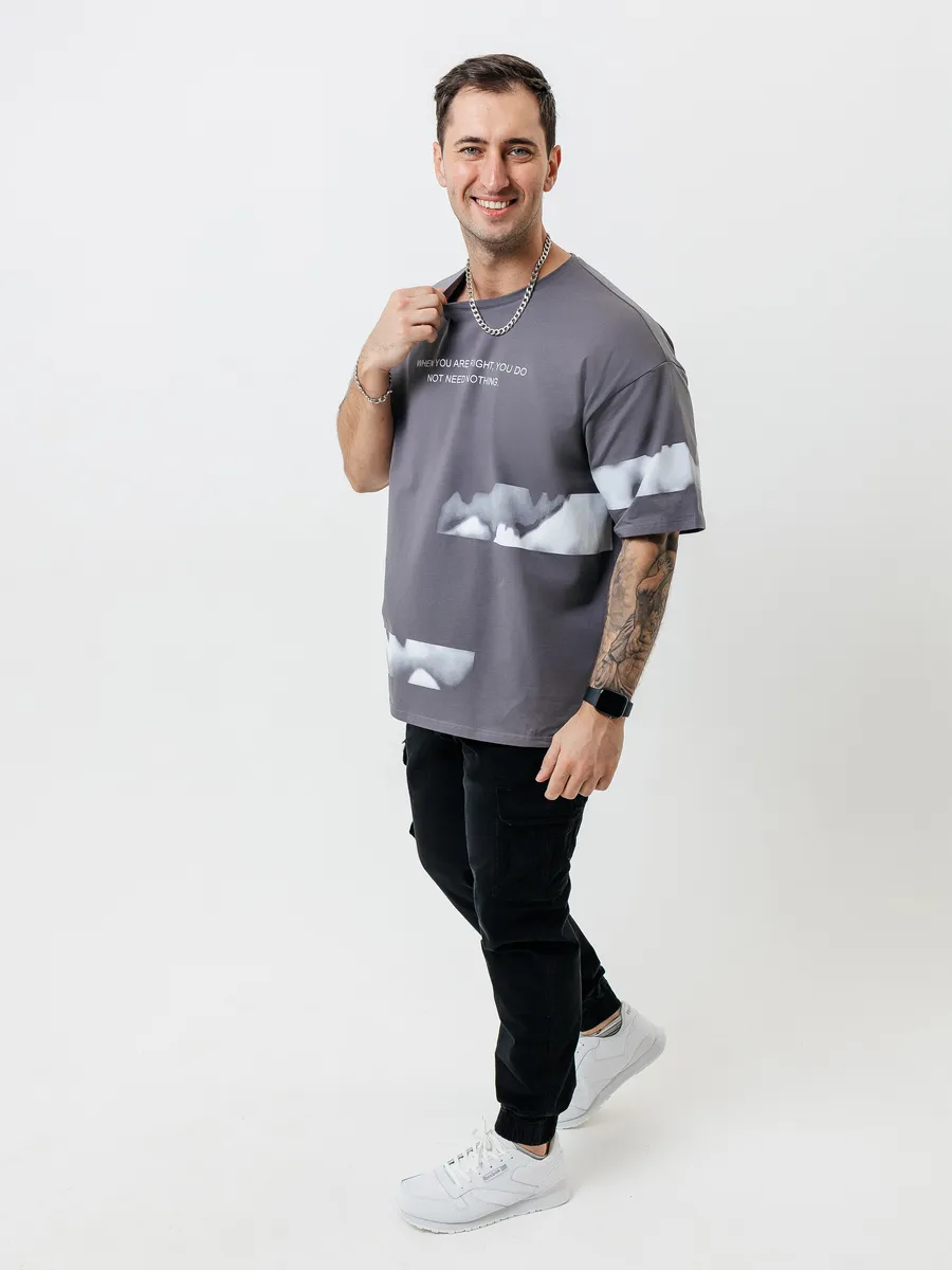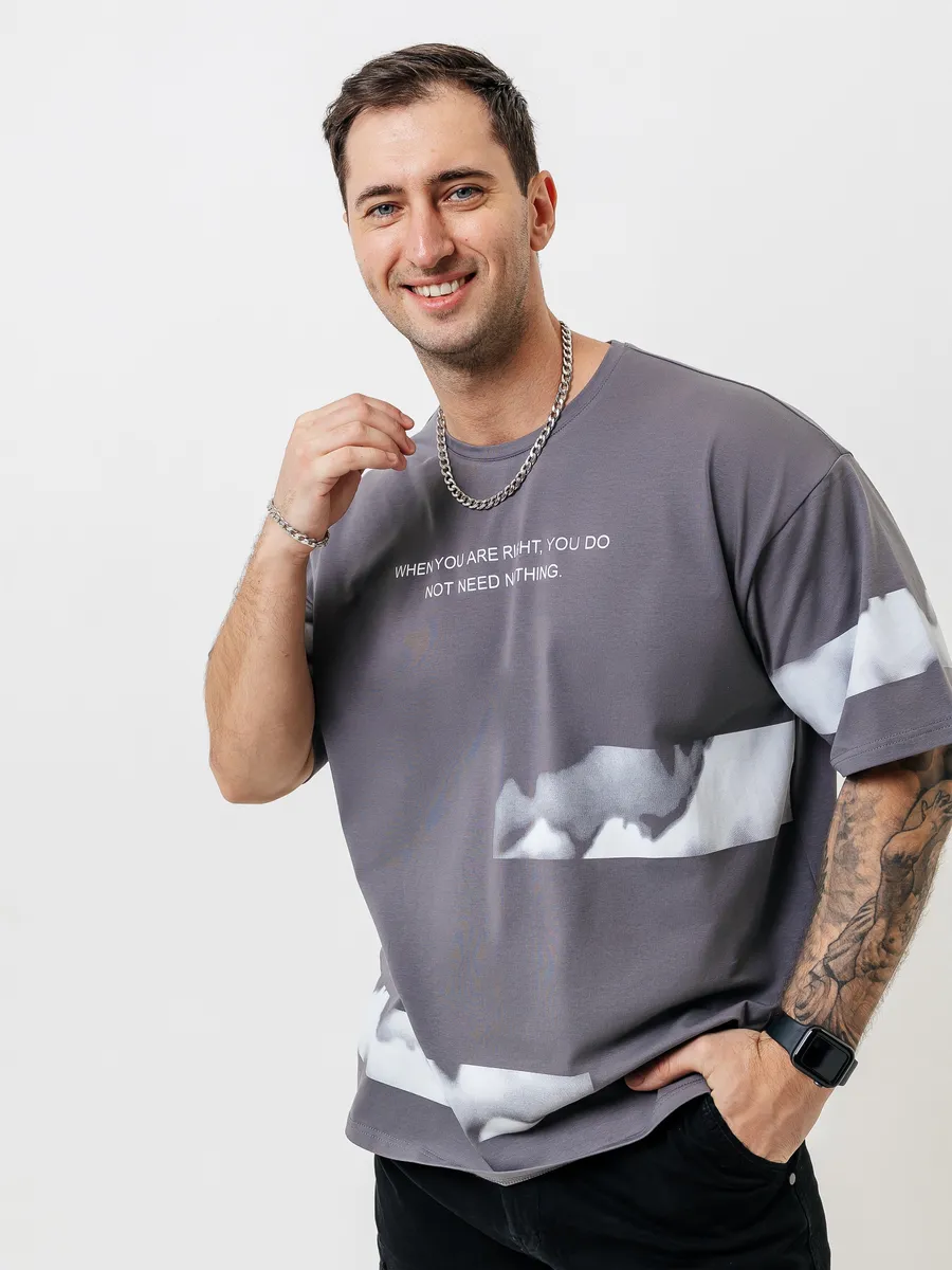 —Футболка базовая оверсайз с принтом хлопок летняя