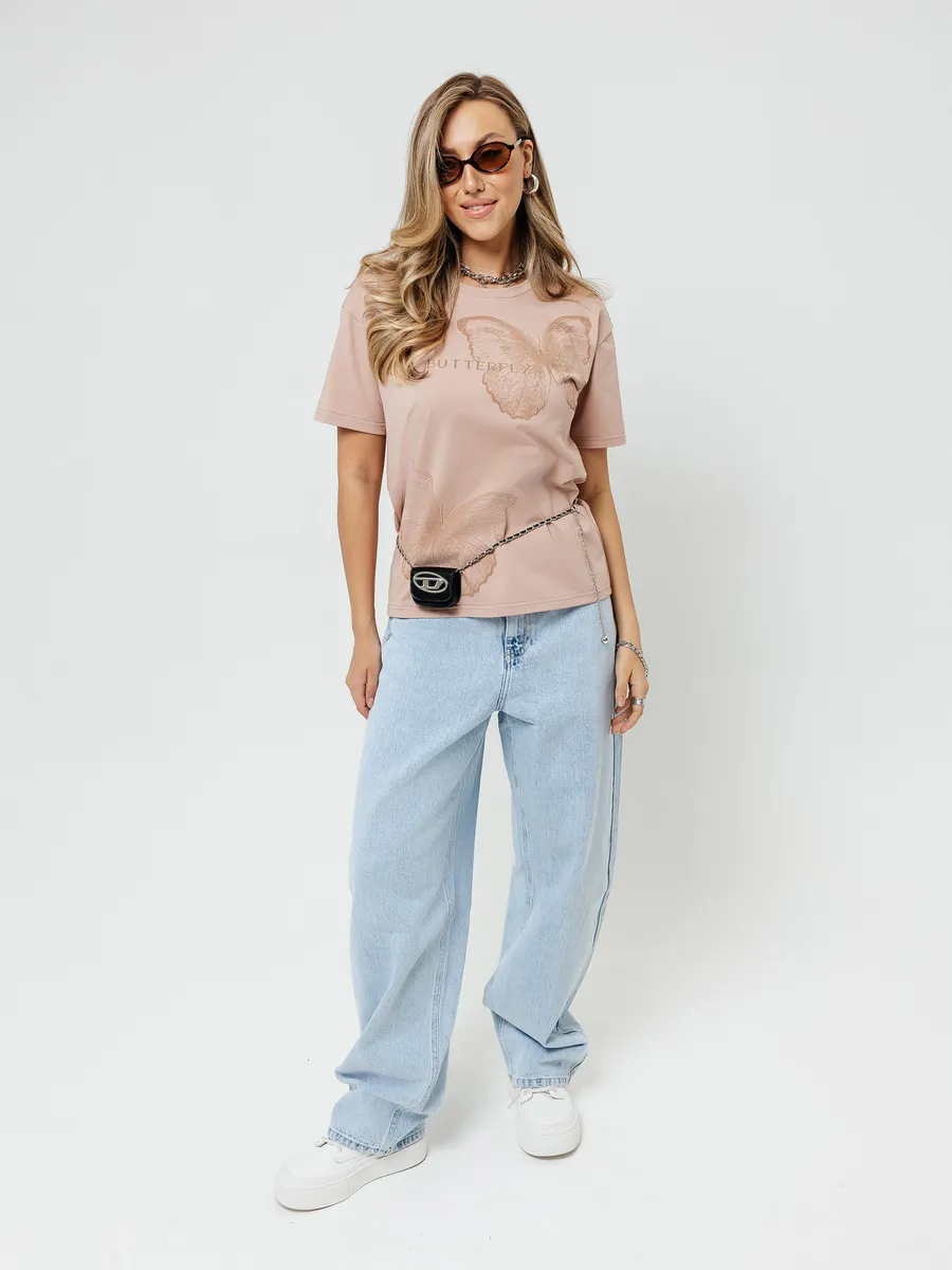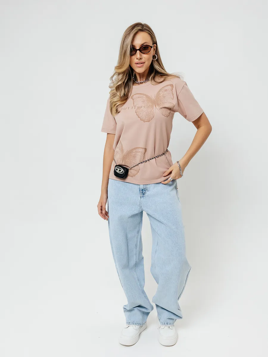 Женская футболка из кулирной глади с лайкрой, с эффектным акварельным принтом. Стильная футболка из качественного однотонного трикотажного полотна. Не теряет формы, не закатывается. Качество полотна пенье, плотность 160 г/кв.м., легкая, очень мягкая и приятная к телу. Для молодых девушек и стильных женщин.