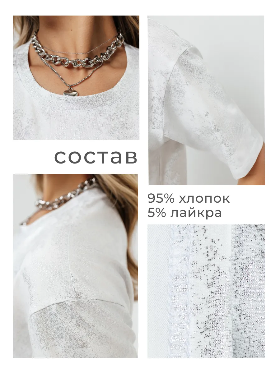 Женская блузка-футболка из кулирной глади с лайкрой со спущенным рукавом. из трендового полотна с нанесением блеска, ультра модно. Качество полотна пенье, плотность 180 г/кв.м., кулирная гладь. Для  девушек и  стильных женщин. Возможны как  классические варианты для офиса, так и для вечернего выхода.