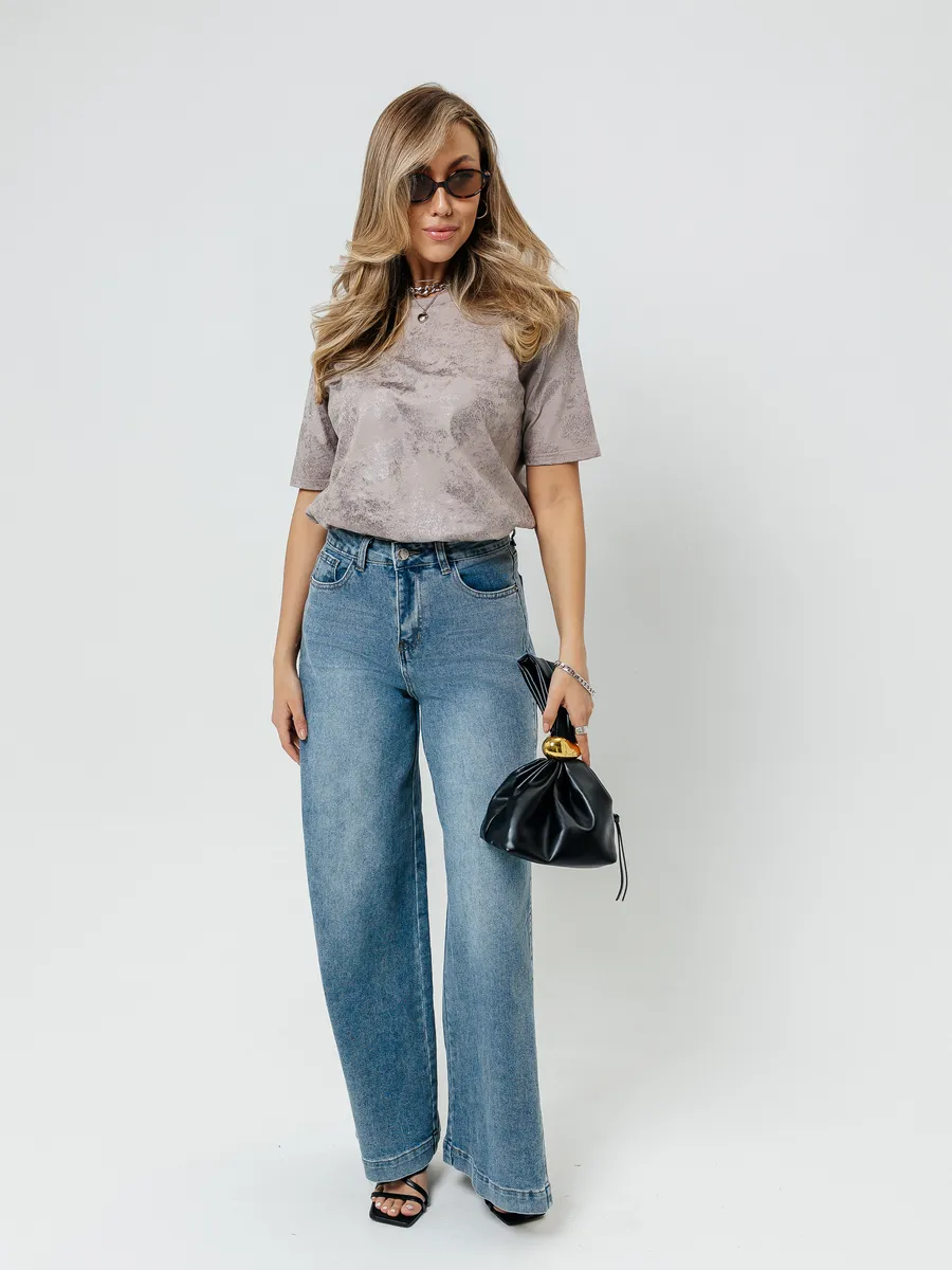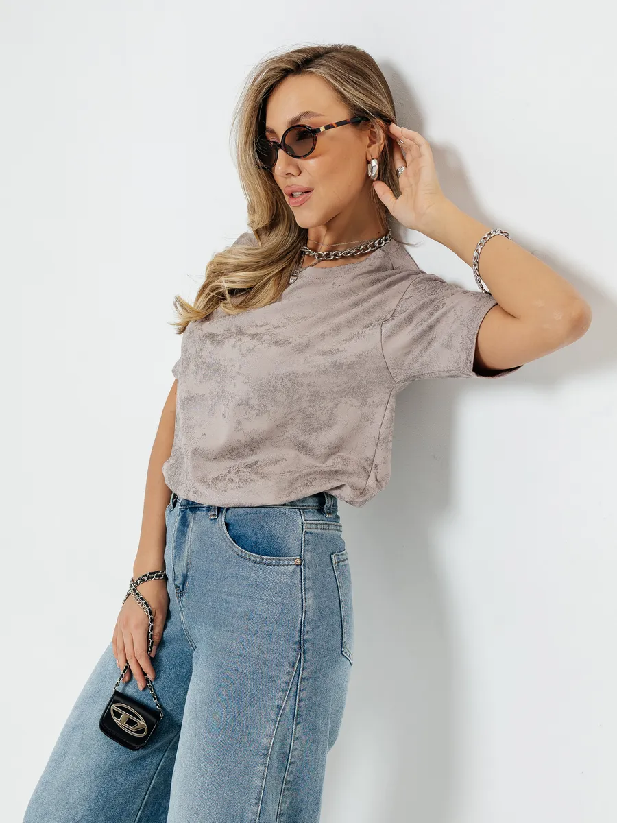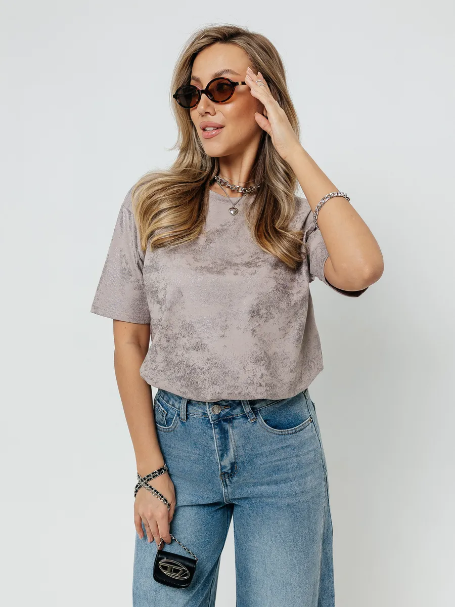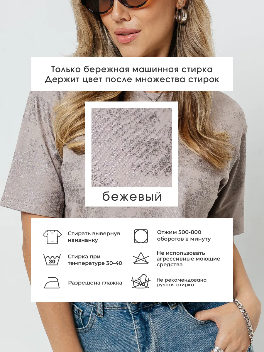 Женская блузка-футболка из кулирной глади с лайкрой со спущенным рукавом. из трендового полотна с нанесением блеска, ультра модно. Качество полотна пенье, плотность 180 г/кв.м., кулирная гладь. Для  девушек и  стильных женщин. Возможны как  классические варианты для офиса, так и для вечернего выхода.