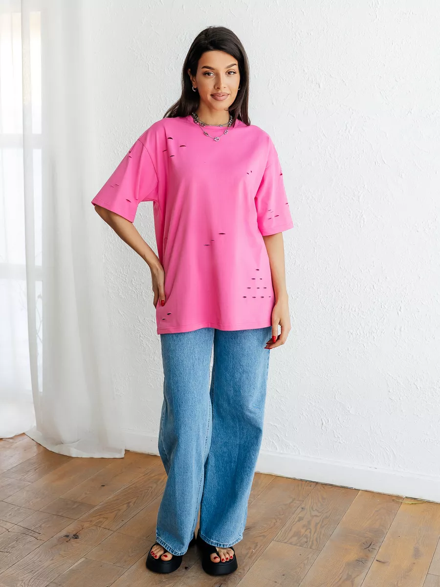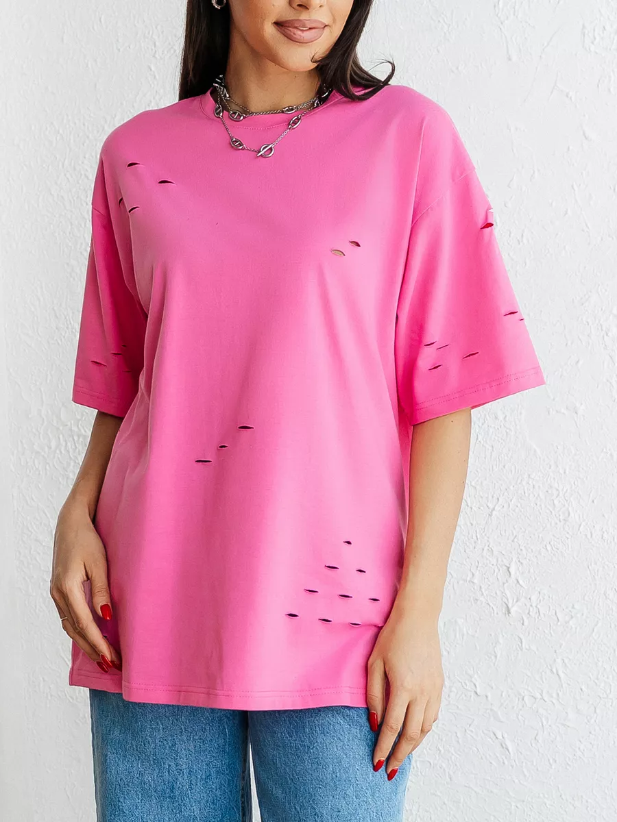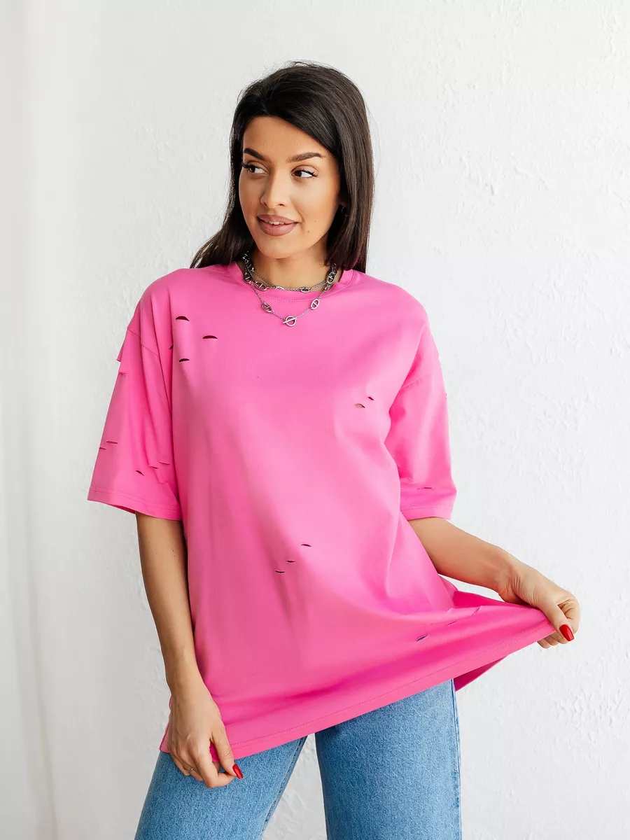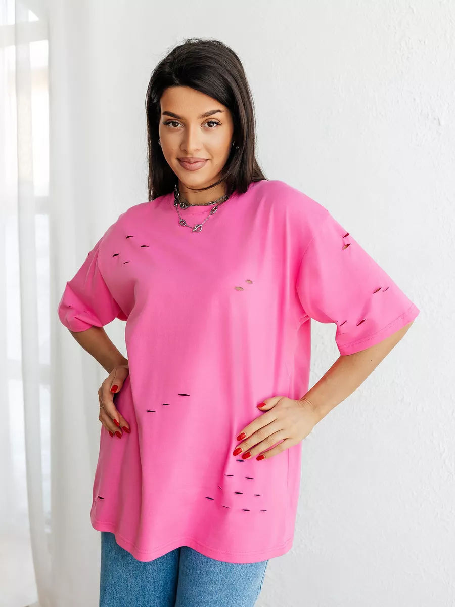 —Футболка оверсайз большого размера с дырками