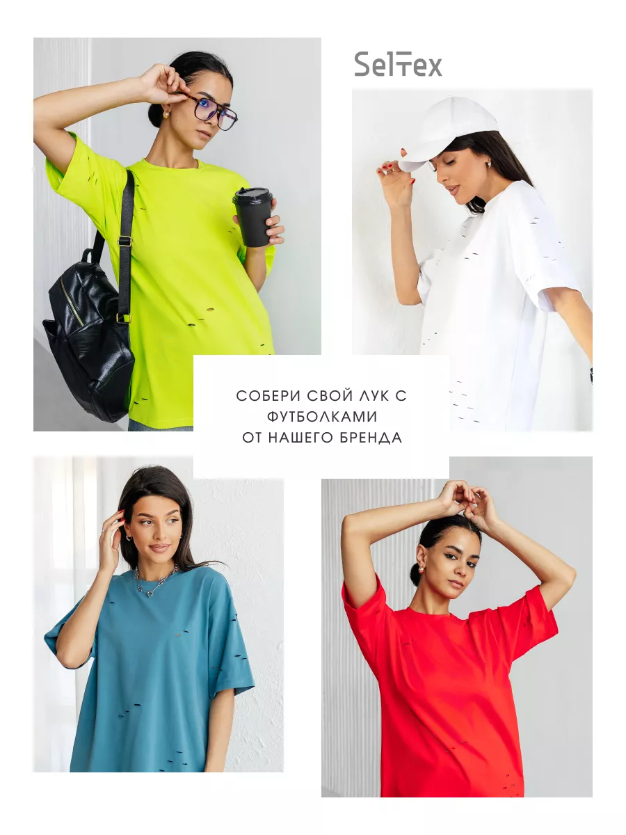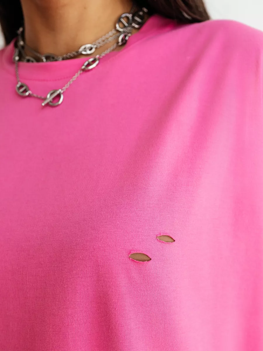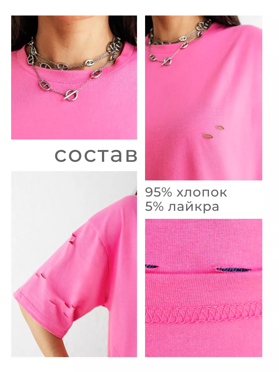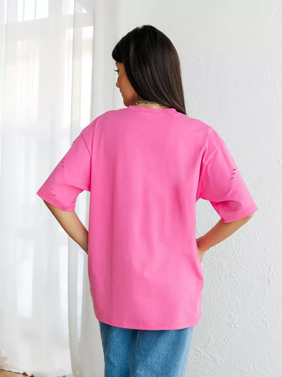 —Футболка оверсайз большого размера с дырками