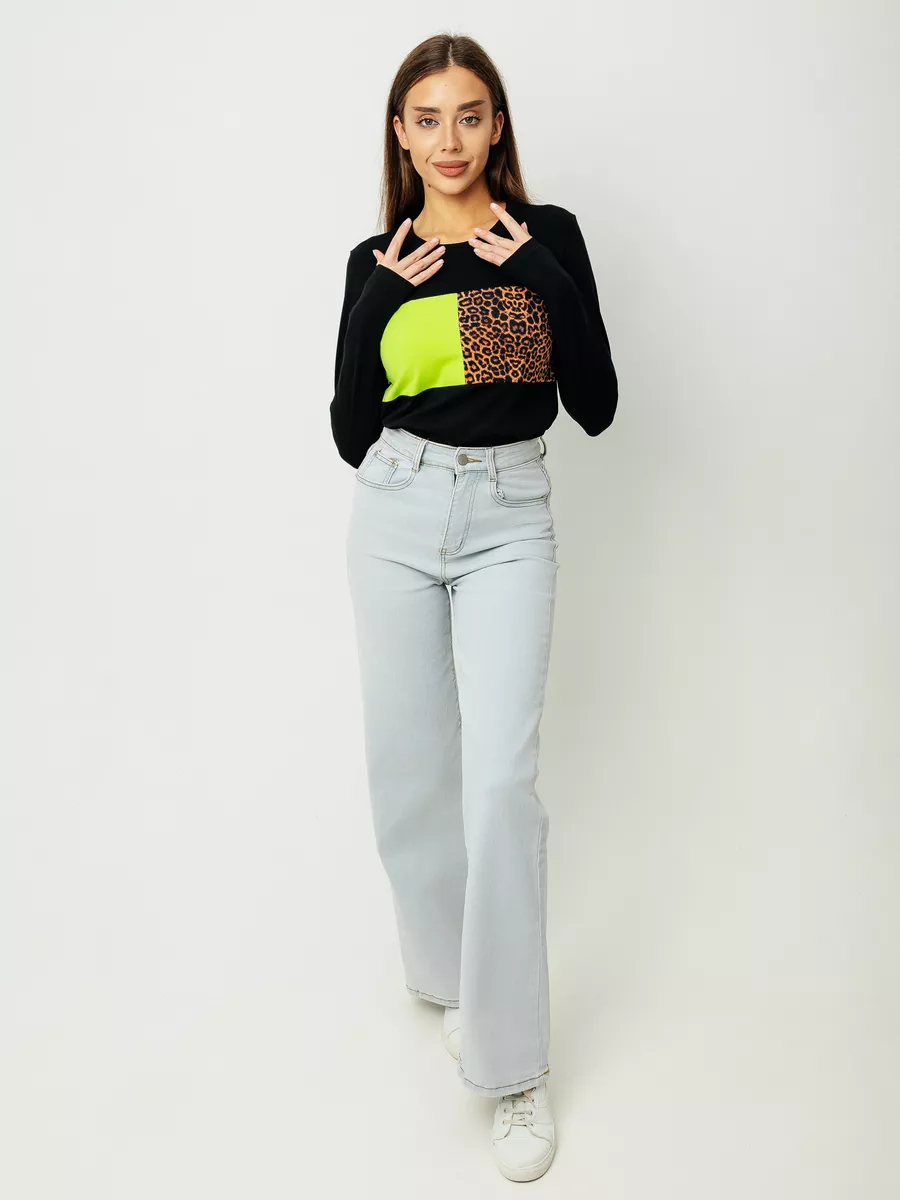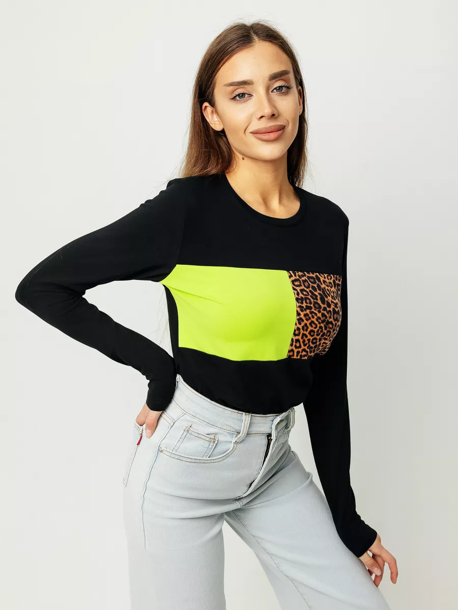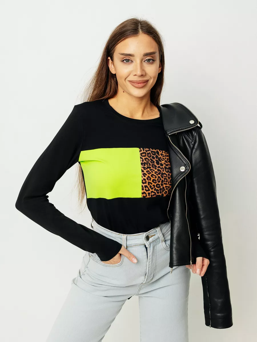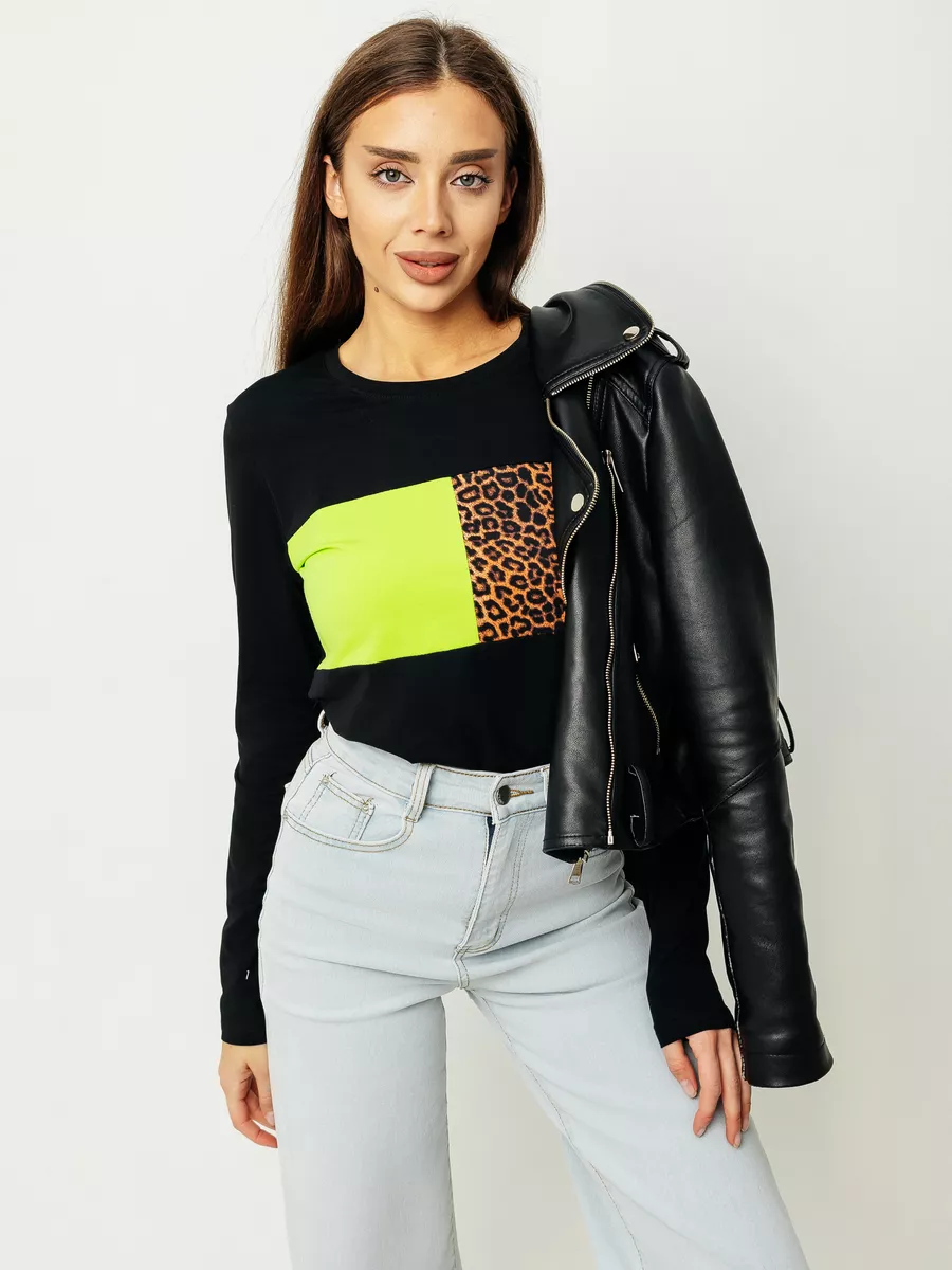 Женский лонгслив с длинными рукава принтом на полочке и рукавах