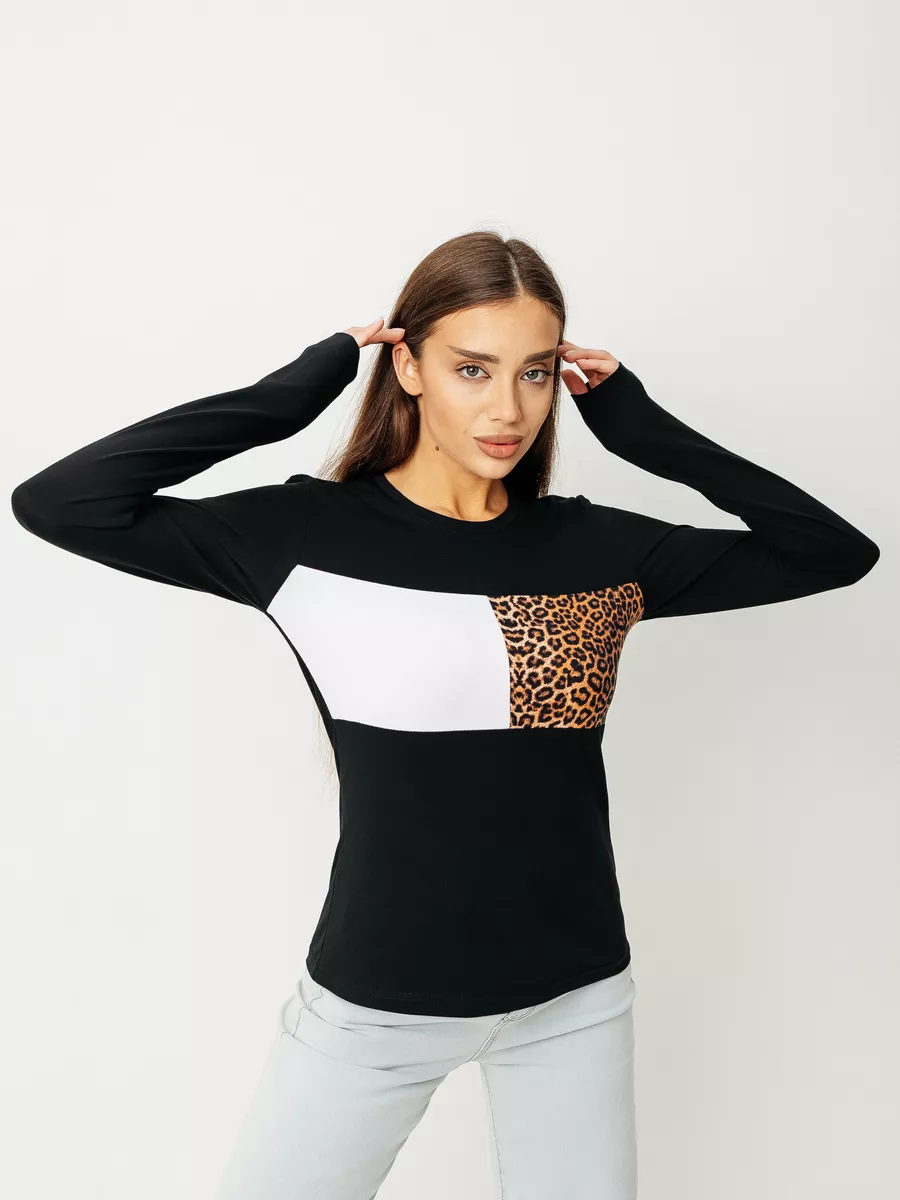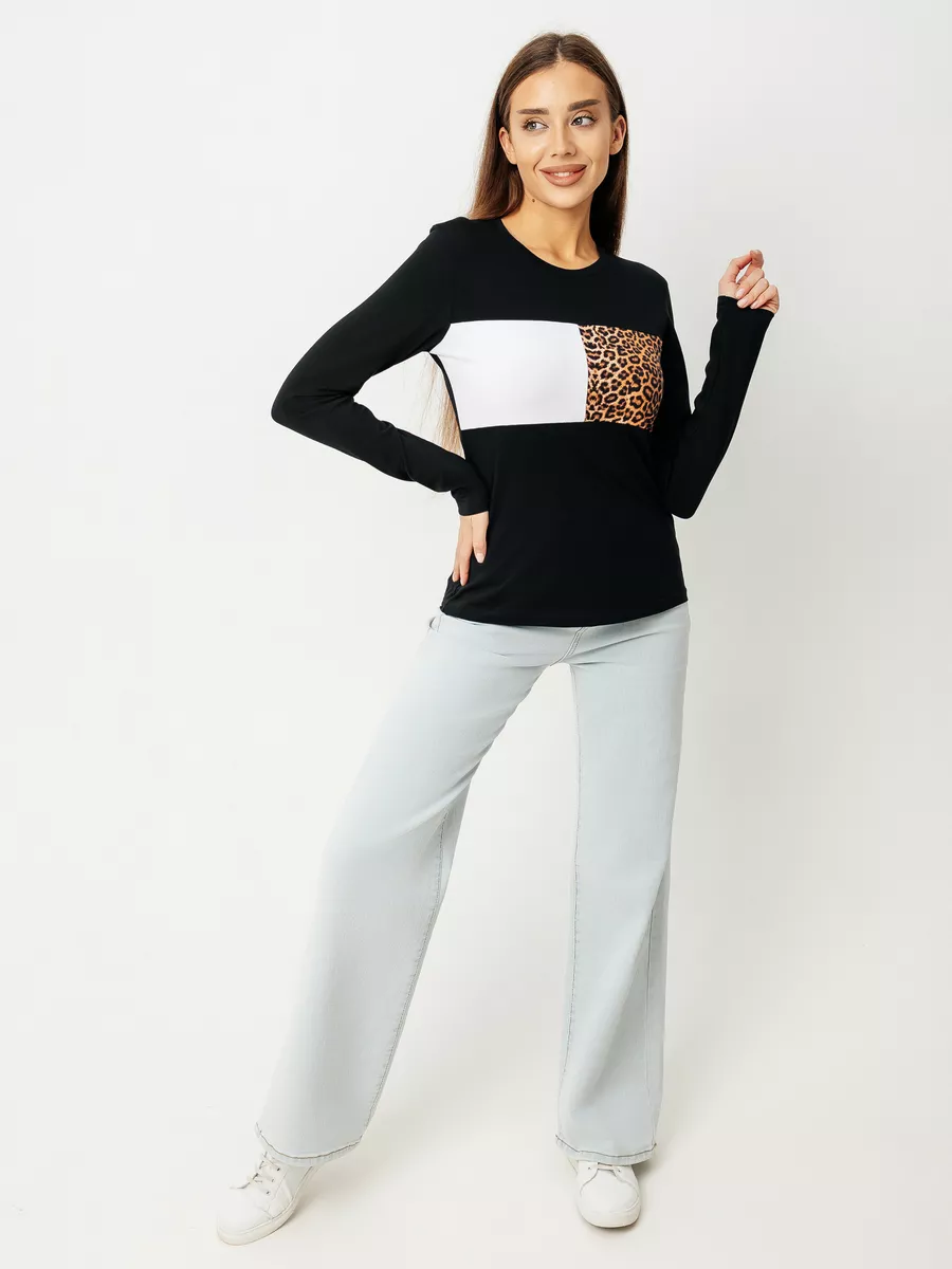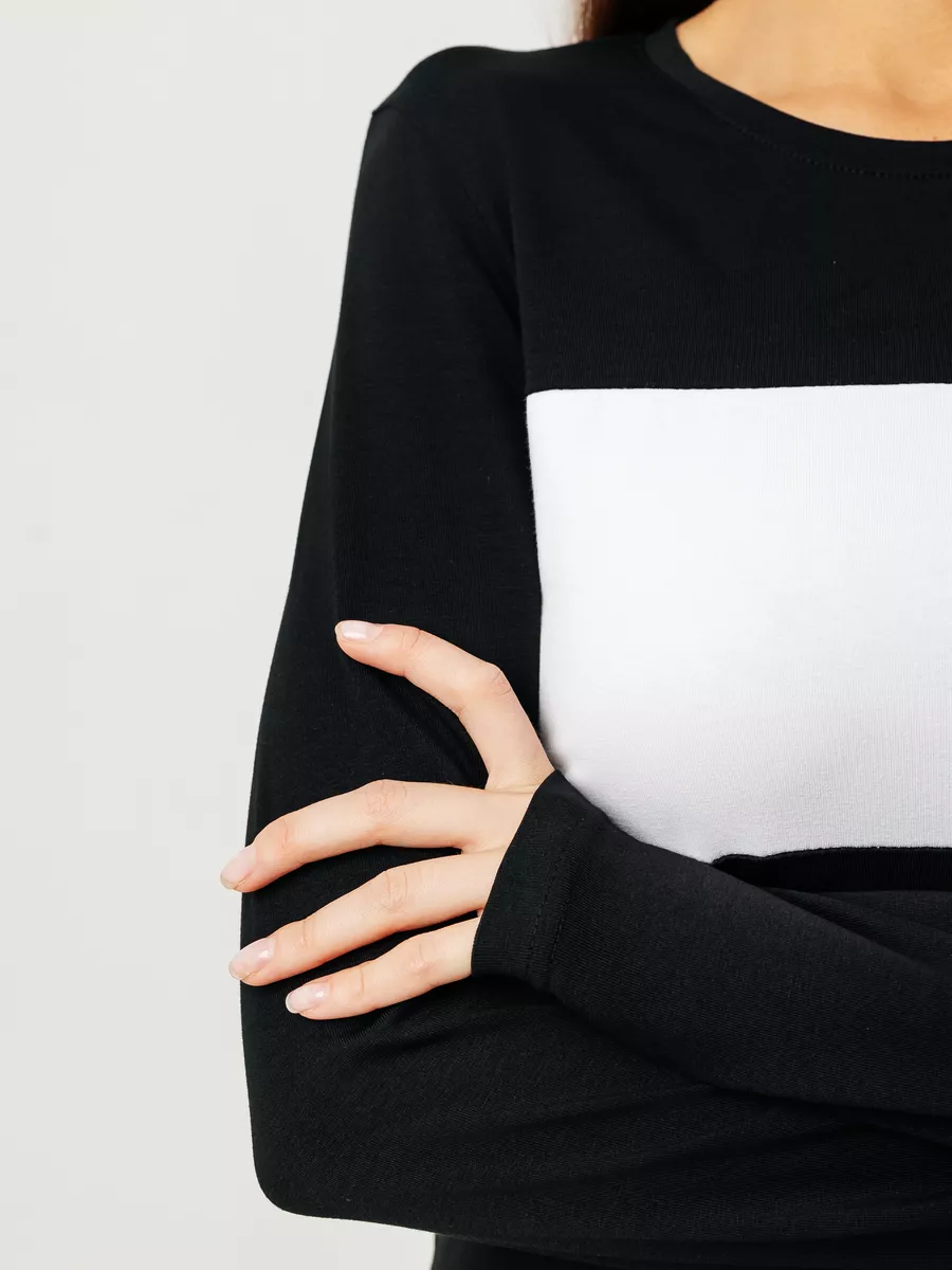 Женский лонгслив с длинными рукава принтом на полочке и рукавах