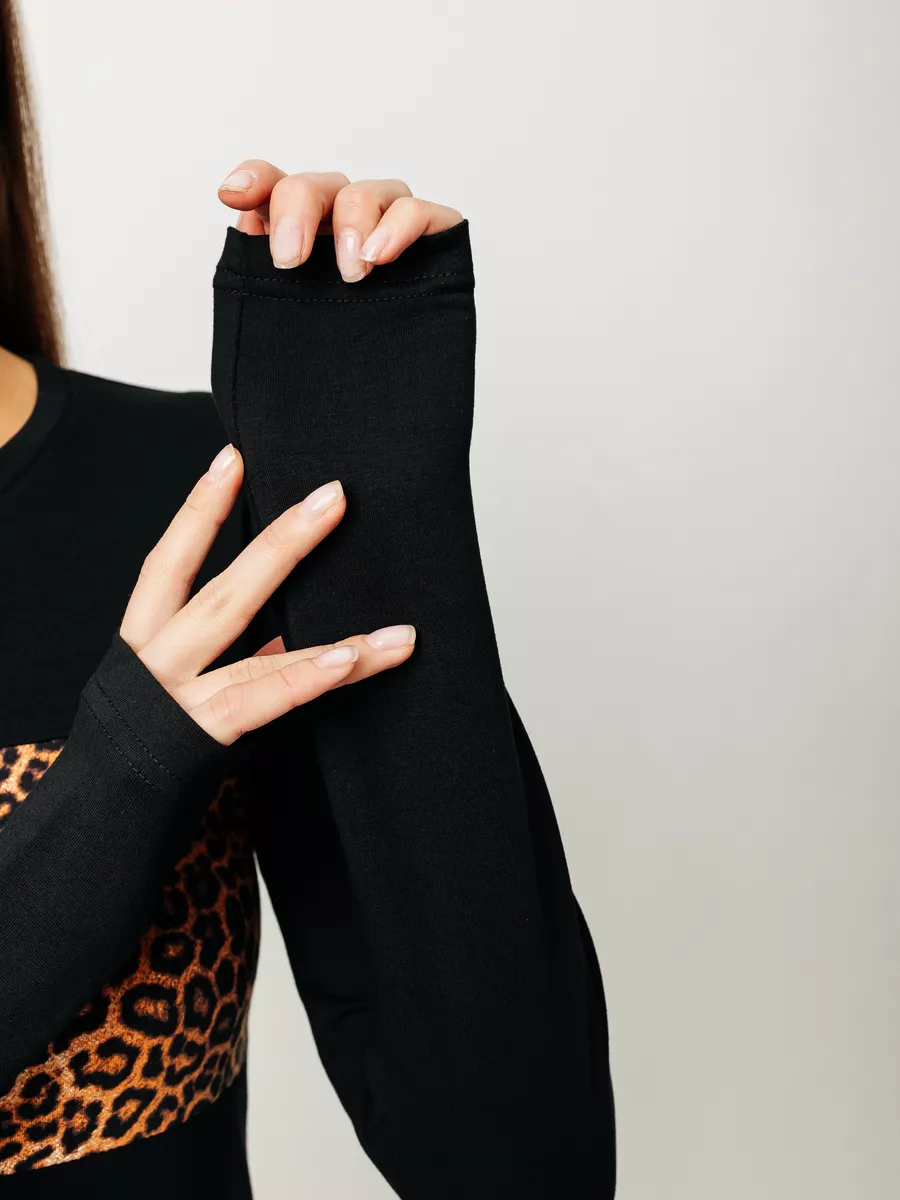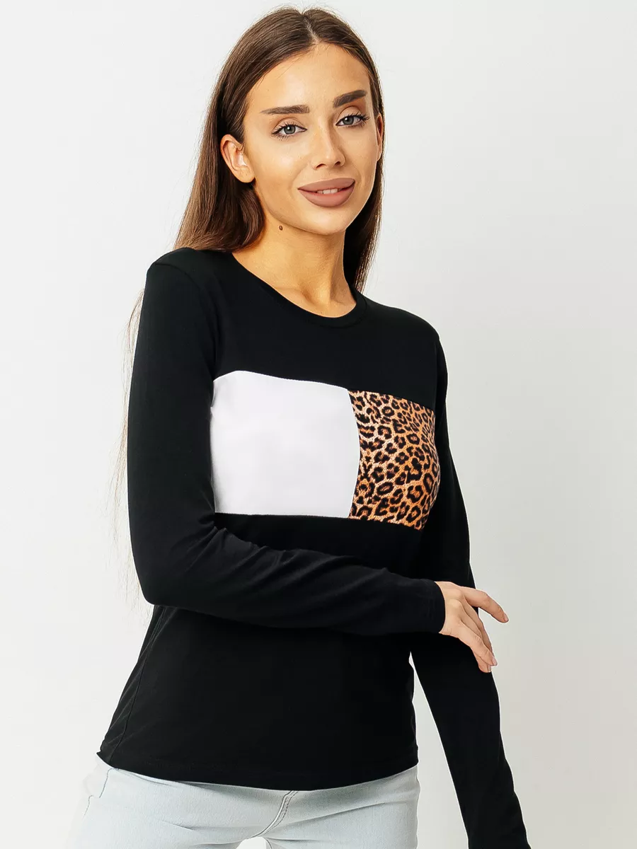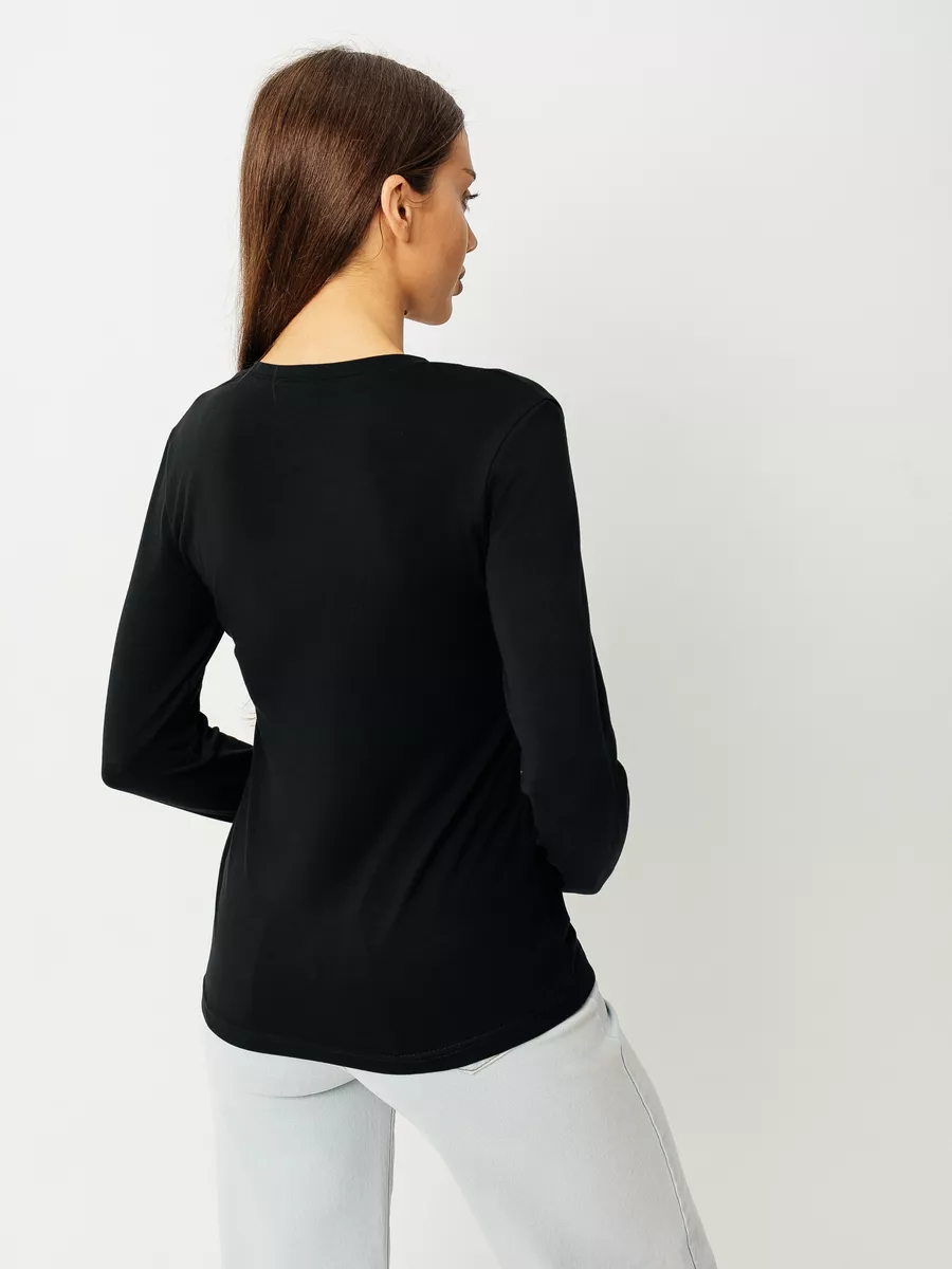 Женский лонгслив с длинными рукава принтом на полочке и рукавах