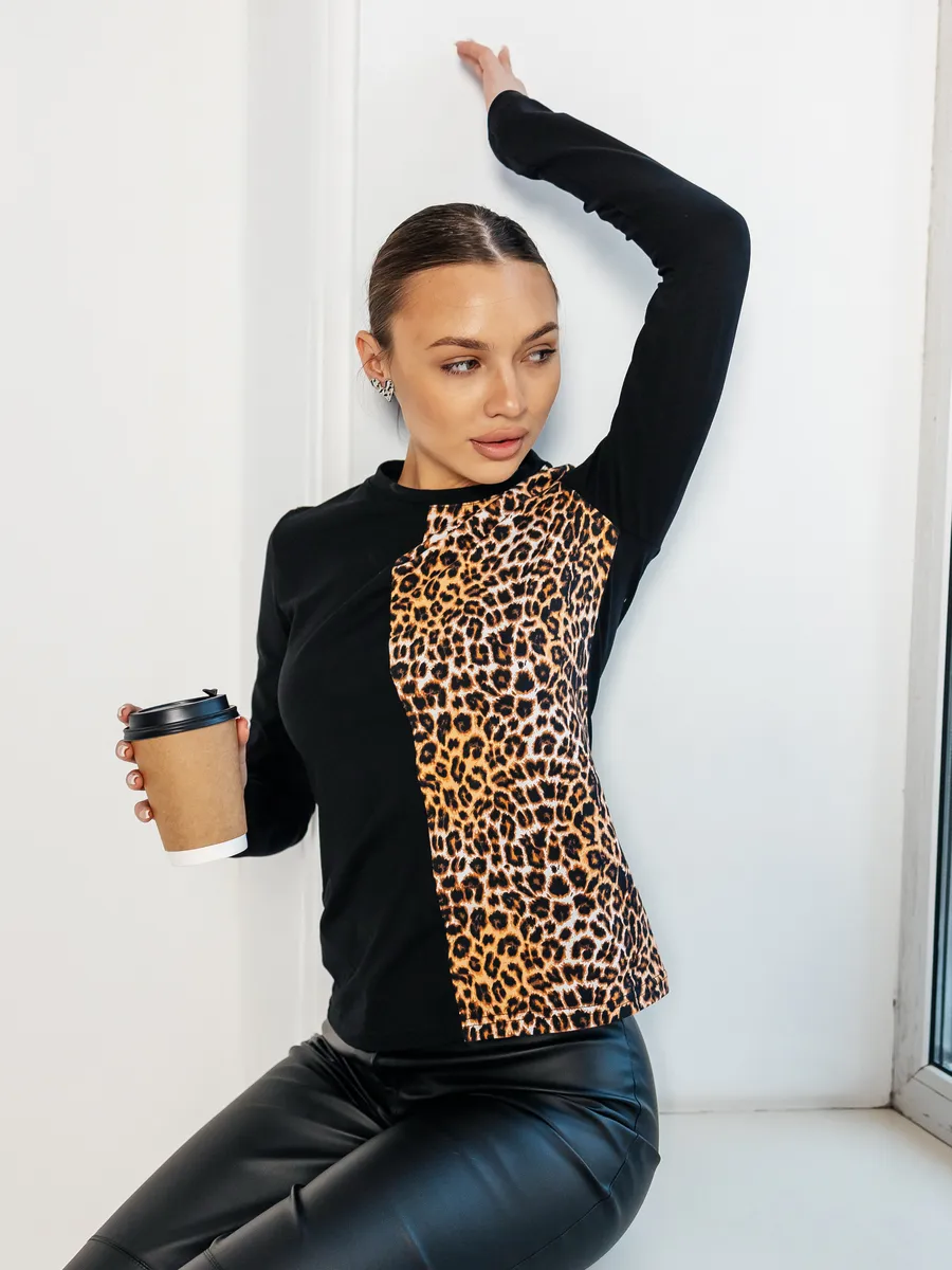 —Лонгслив женский облегающий с принтом дк573