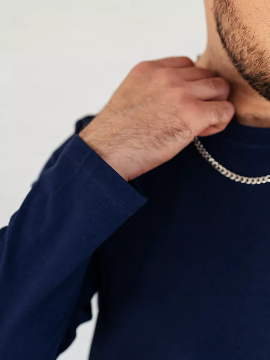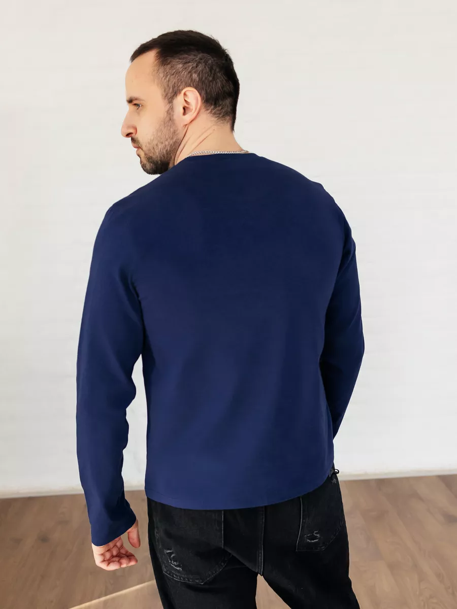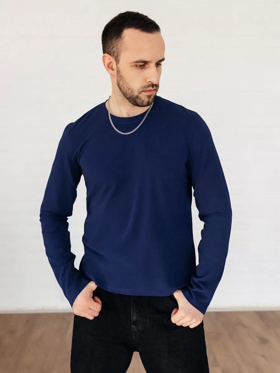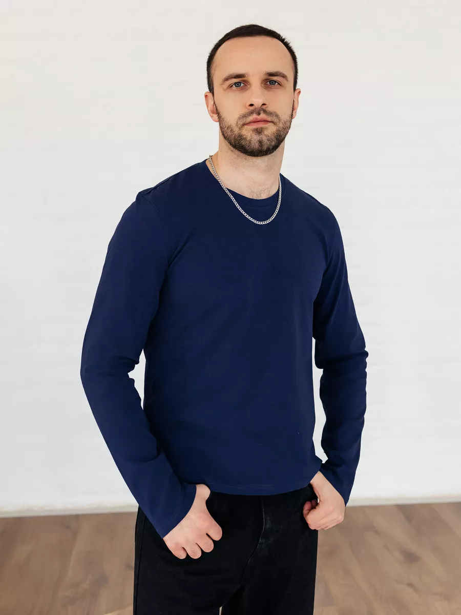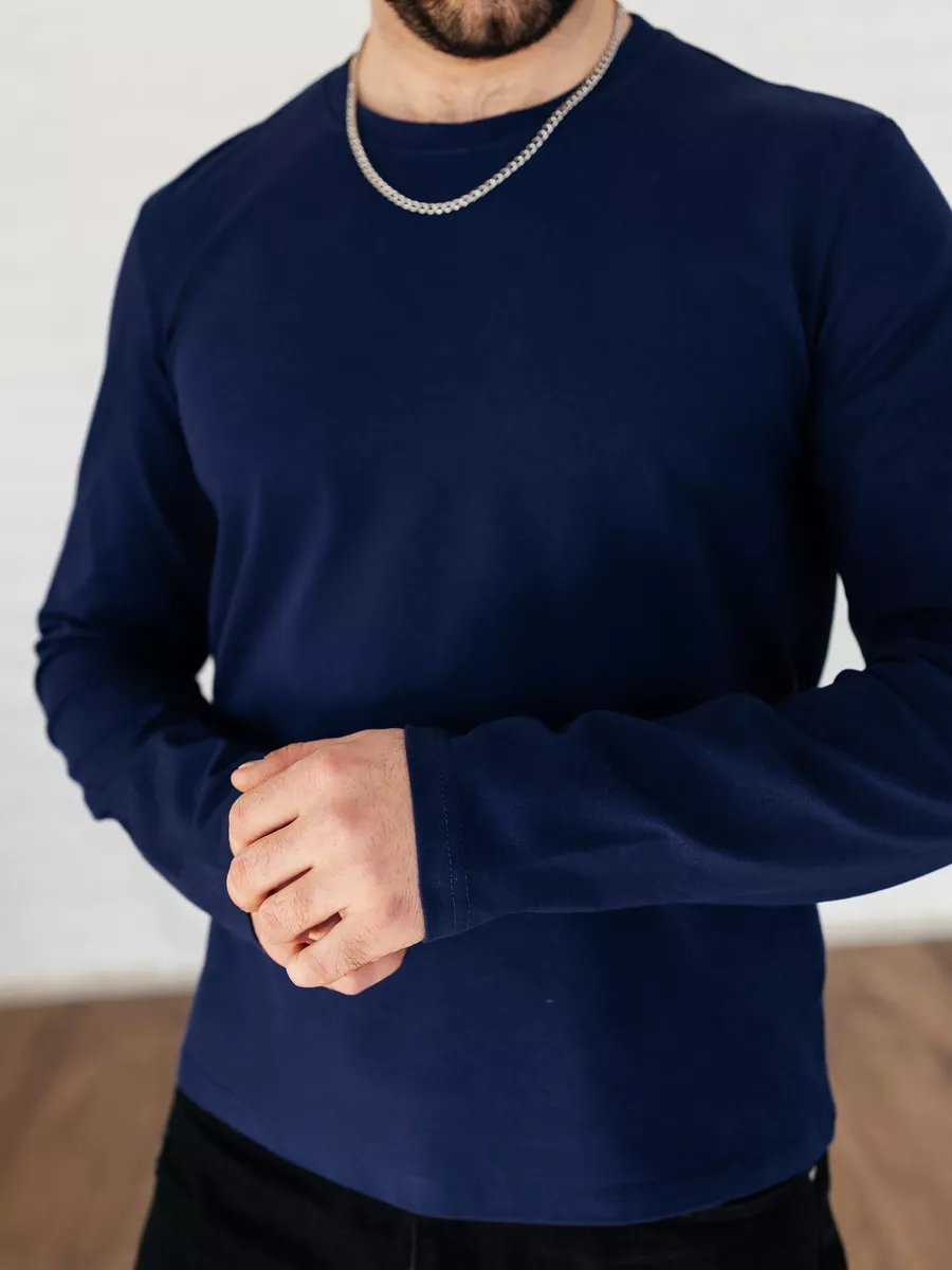 —Лонгслив синий свитшот футболка с длинным рукавом