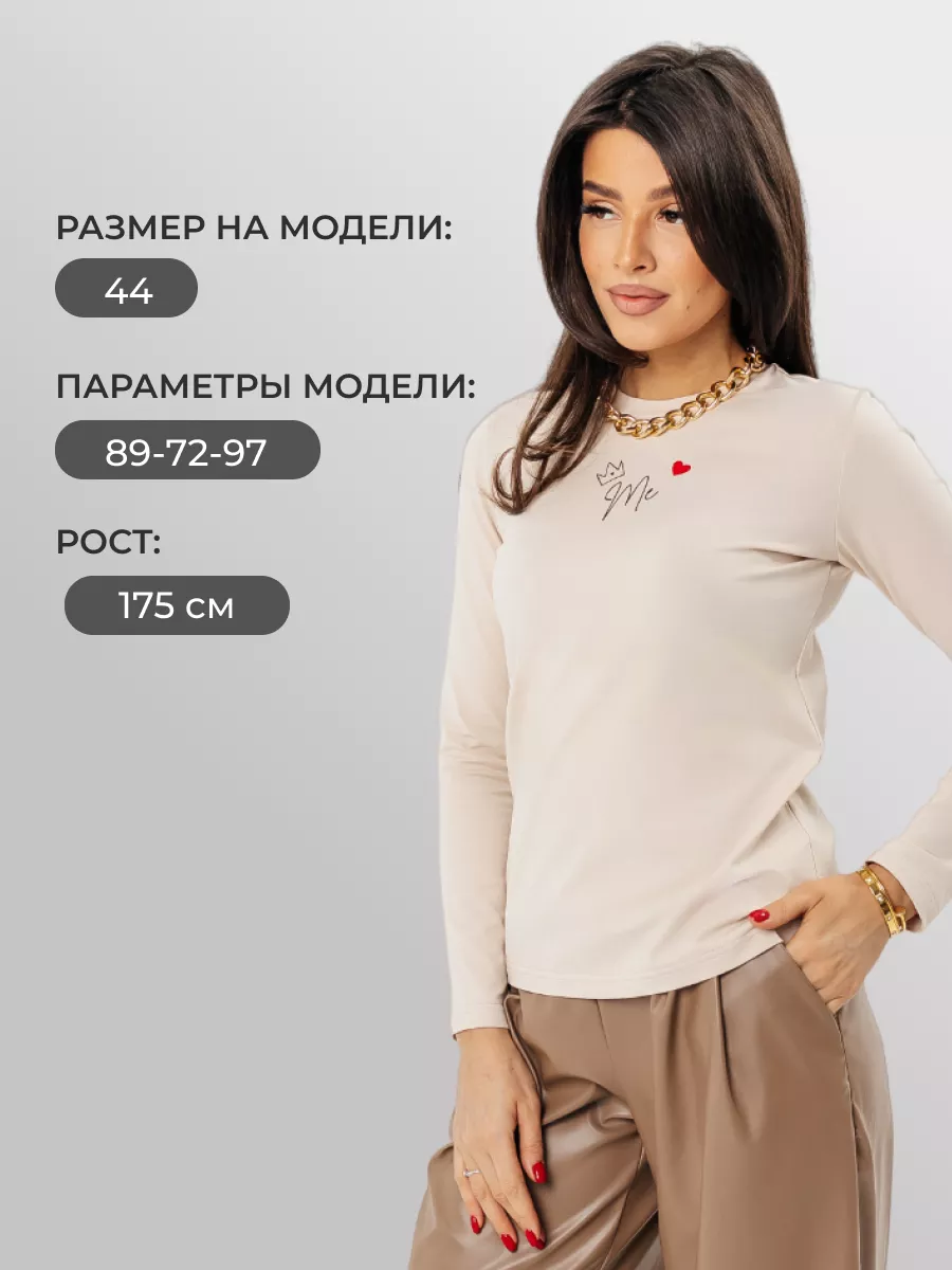 лонгслив женский с принтом на груди - 1 шт