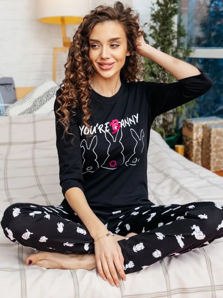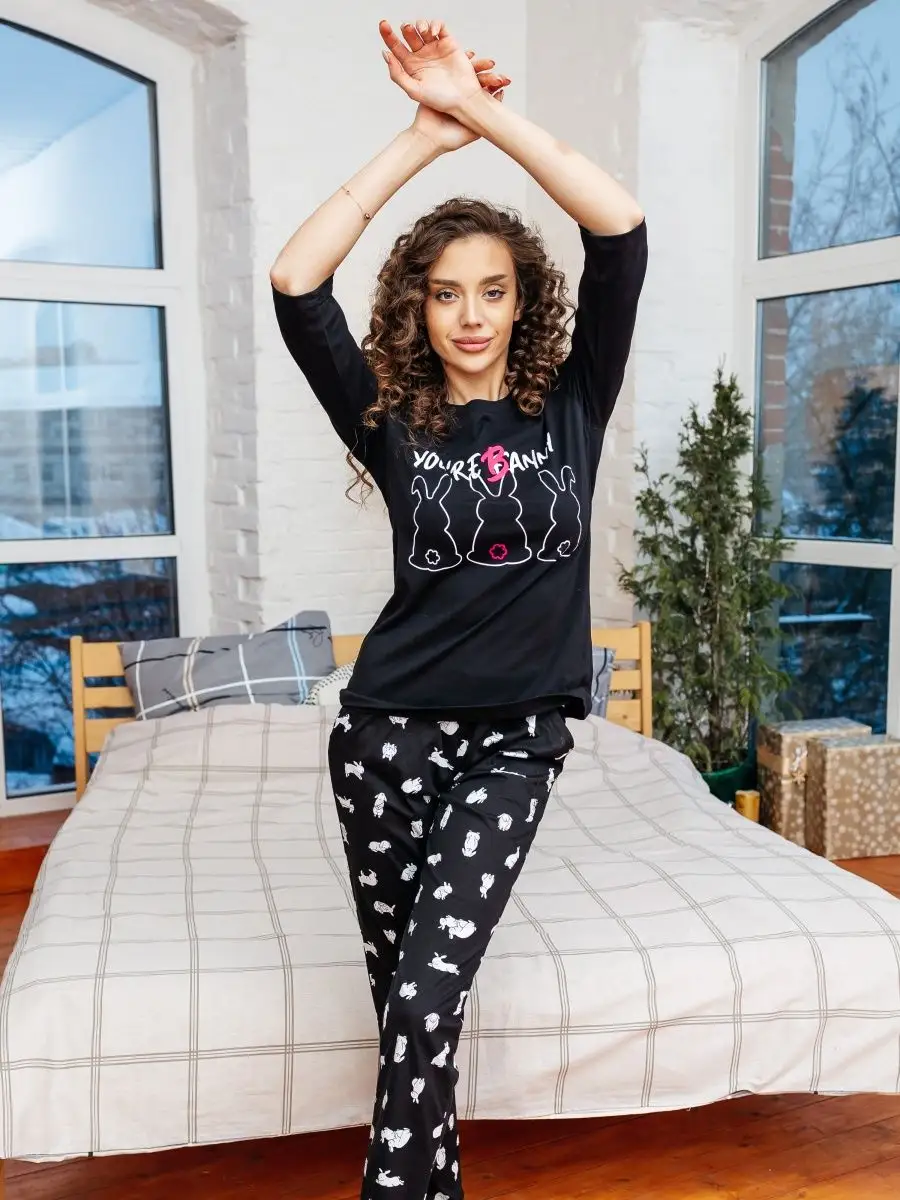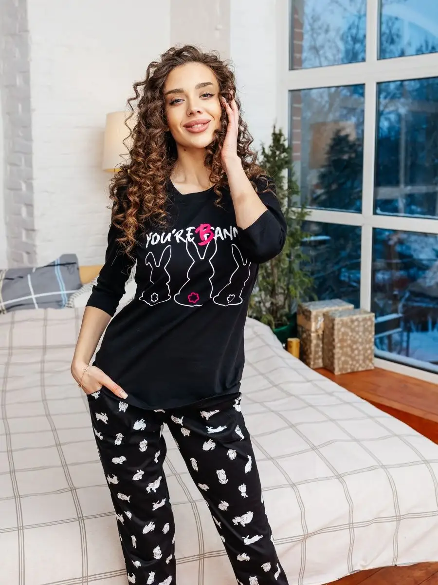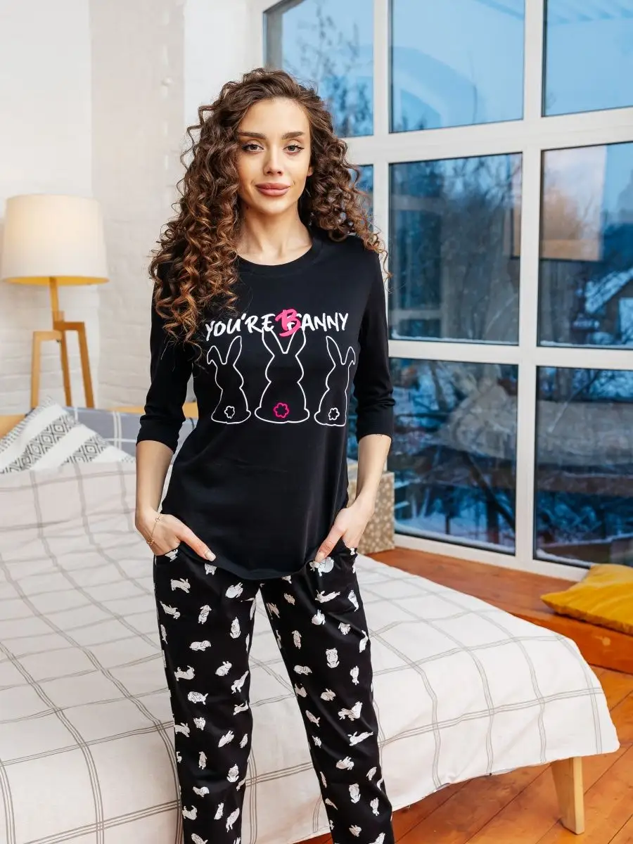 —Пижама женская со штанами домашний костюм большие размеры