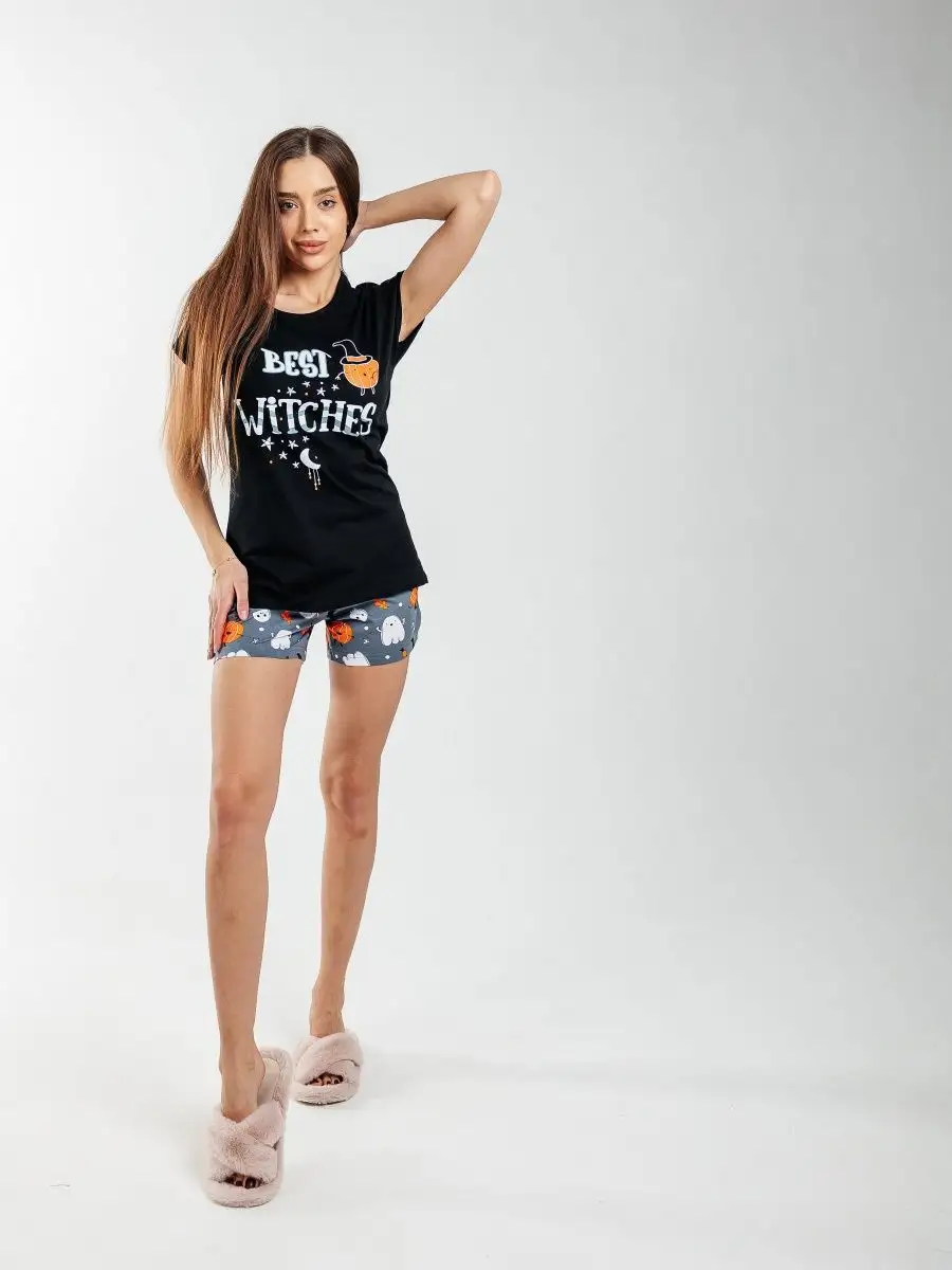 костюм женский трикотажный хлопок : шорты -1шт футболка с коротким рукавом-1шт.