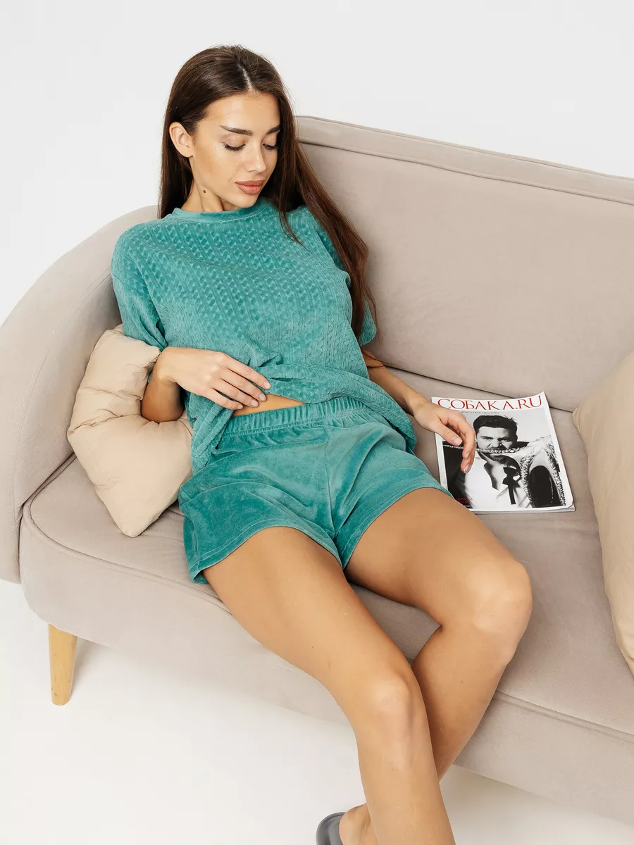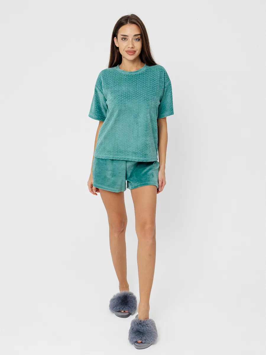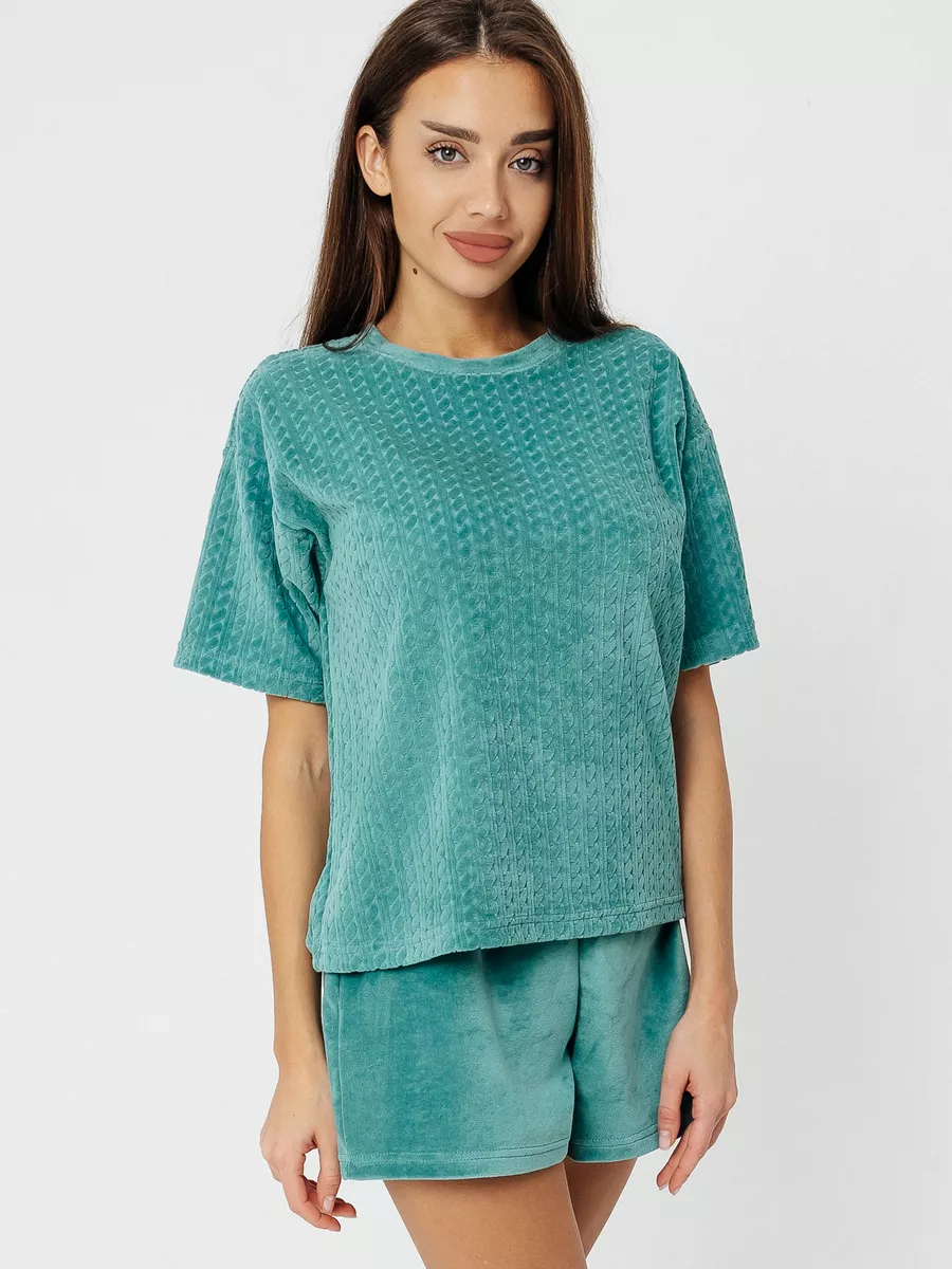 Костюм женский велюровый с шортами и футболкой