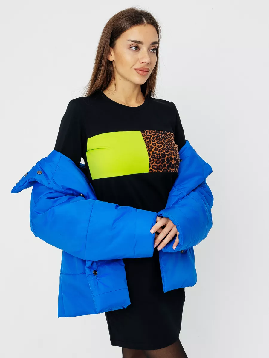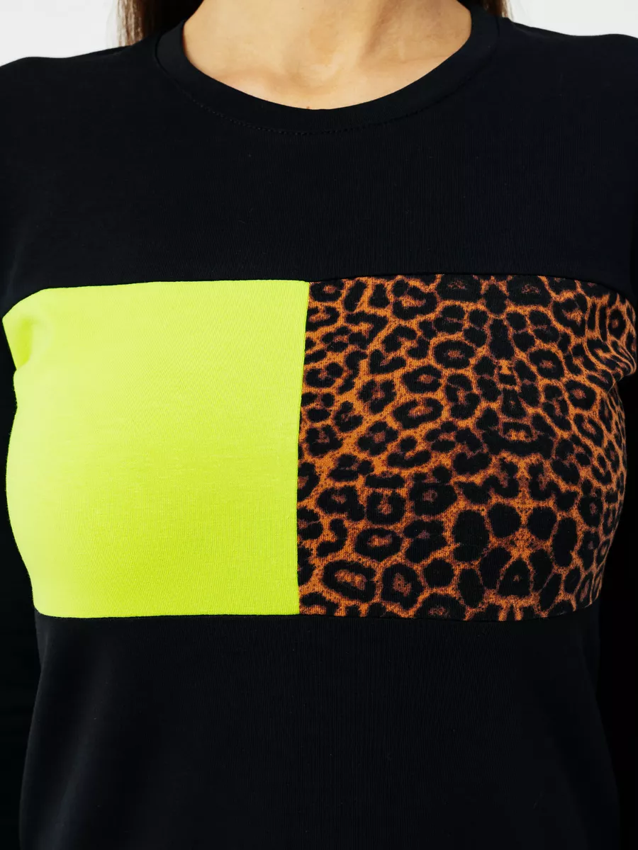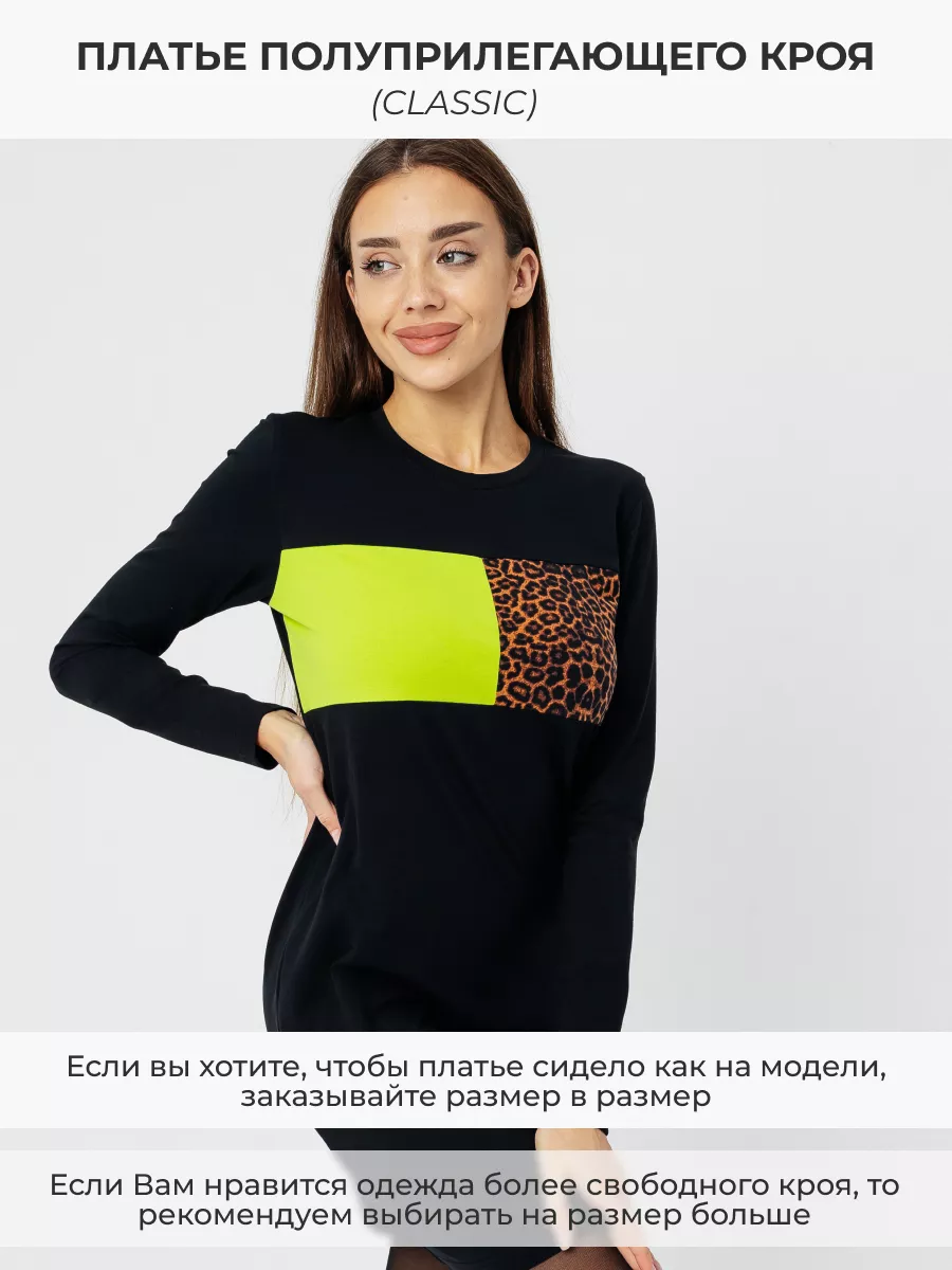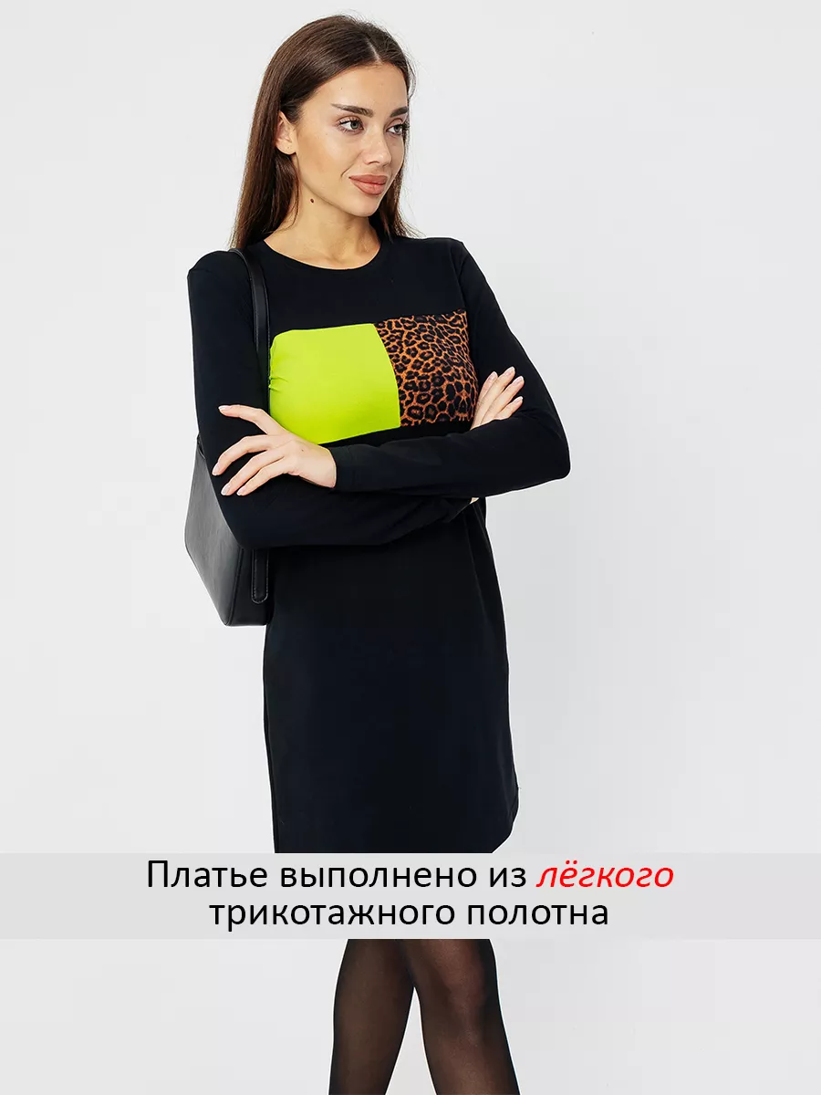 платье женское с длинным рукавом и принтом на груди