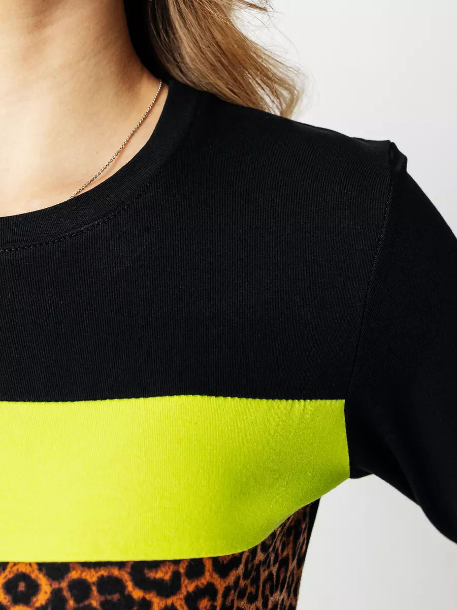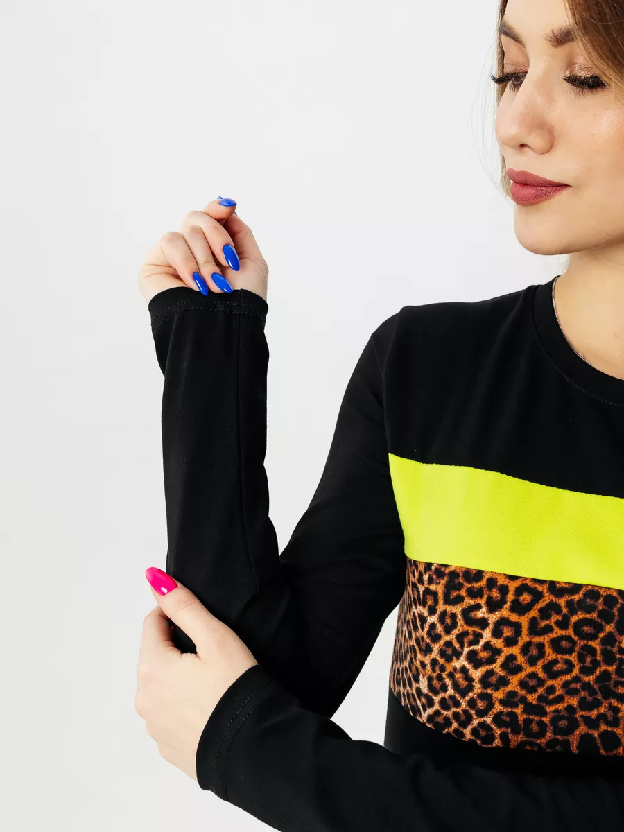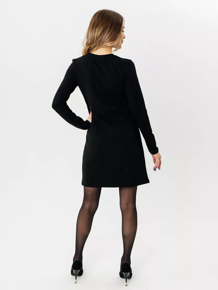 Платье женское с длинным рукавом. Вставка из набивного полотна по линии груди