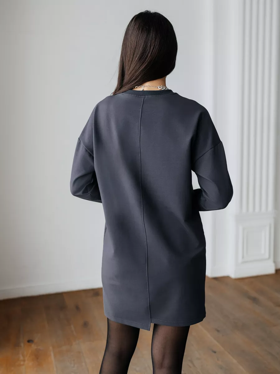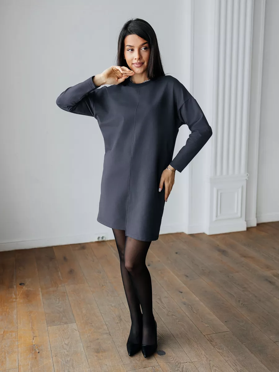 Женское платье с длинным рукавом однотонное